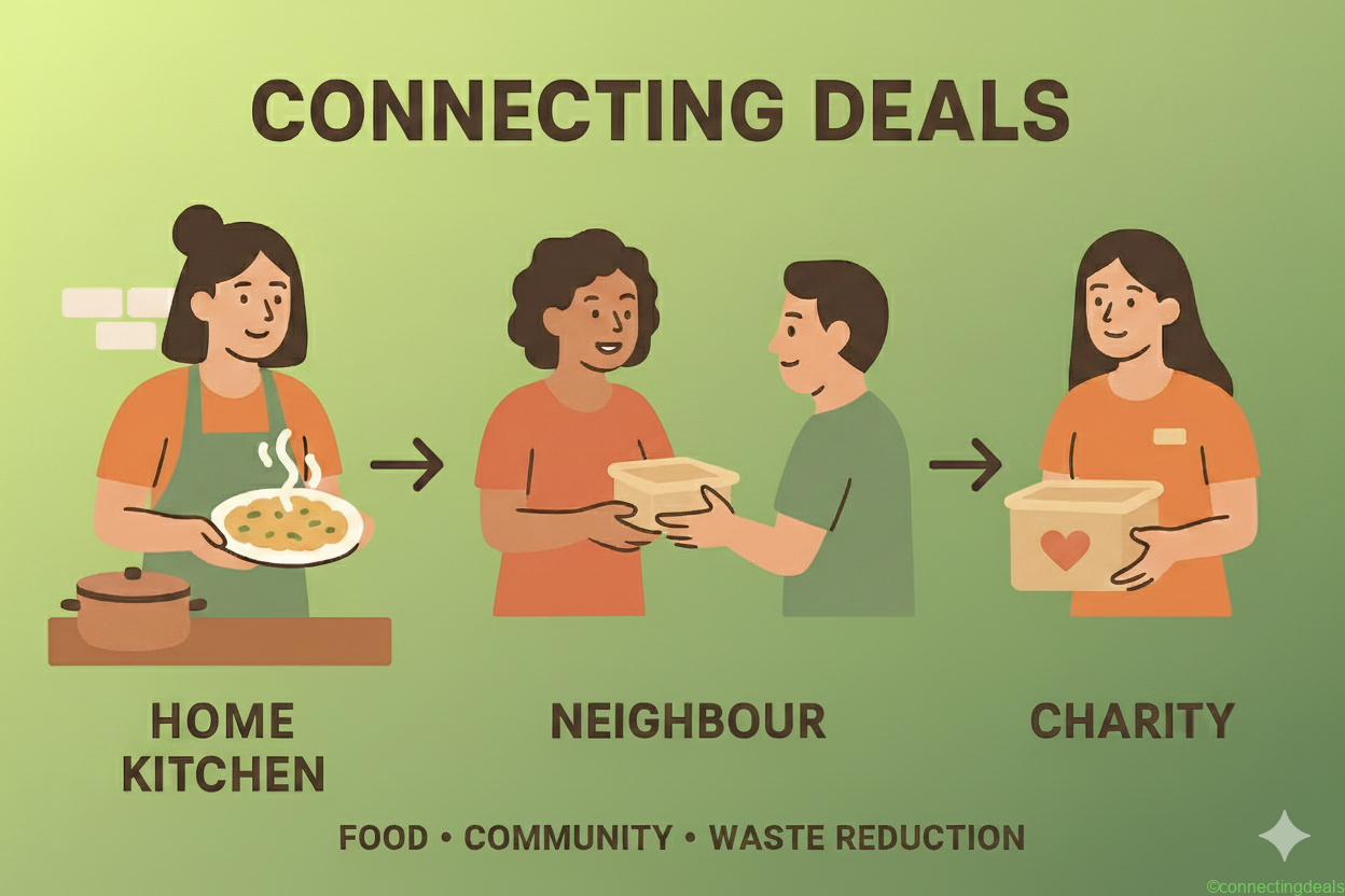 At Connecting Deals, we are building a simple but powerful idea: what if the food we cook at home could do more than just feed our families? What if it could support neighbours, reduce waste, and even create new opportunities for mums and home-based cooks?