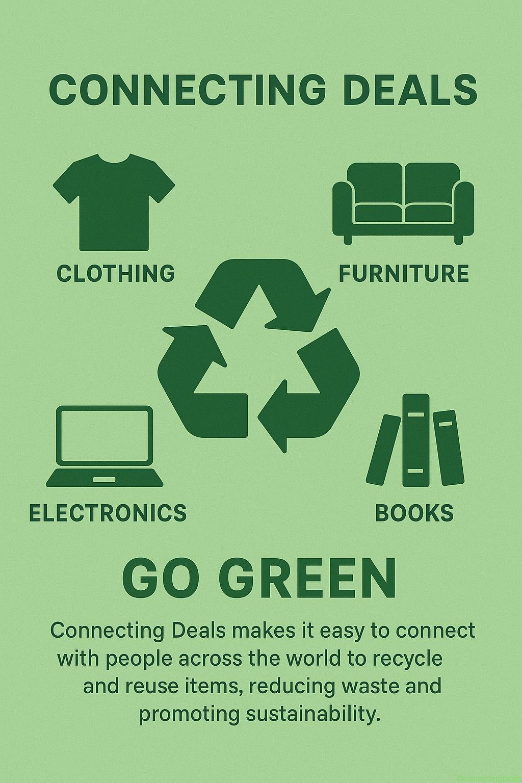 With Connecting Deals, you’re not just buying and selling — you’re becoming part of a global movement to reduce waste and live more sustainably. Together, we can make our communities greener and our world cleaner.